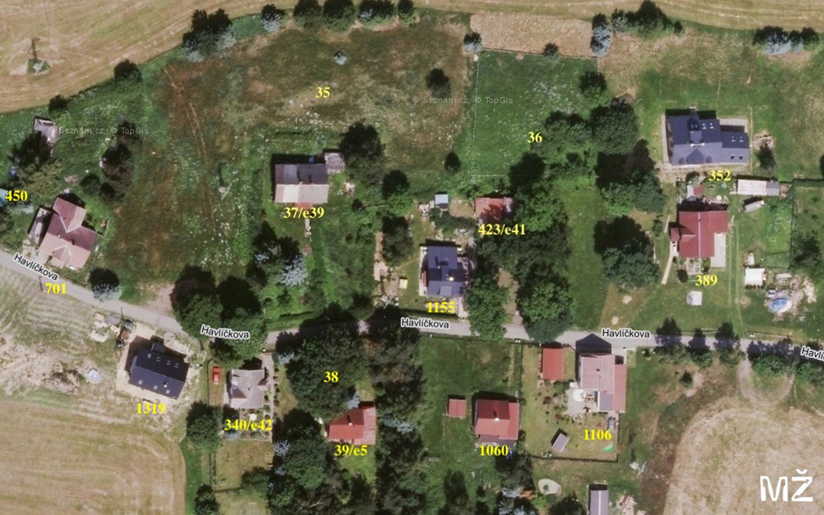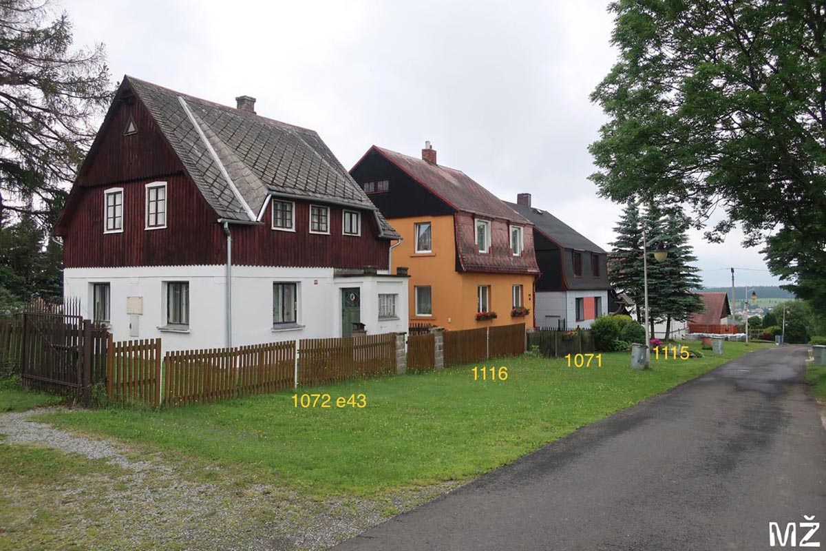 Die Haus/Katasternummern wurden von Herrn Miroslav Žácek hinzugefügt.